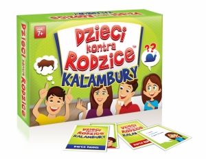 DZIECI KONTRA RODZICE: KALAMBURYTo wesoła i wciągająca gra rodzinna.Zabawne hasła, przygotowane specjalnie dla dzieci i dla rodziców, zapewnią niezapomnianą rozrywkę.W grze zwycięży ten, kto ma dobry refleks i szeroką wyobraźnię.Pokazuj i rysuj hasła, niech wygra lepszy!Grę wyprodukowano w Polsce.ZAWARTOŚĆ OPAKOWANIA:- 54 karty ze 162 pytaniami- instrukcjaWIEK GRACZY:- powyżej 7 latLICZBA GRACZY:- od 2 do 6WYMIARY OPAKOWANIA:- 17,5 x 11,5 x 3 cmWAGA OPAKOWANIA:- ok. 200 gUWAGI:Produkt posiada certyfikat CE.Produkt nie nadaje się dla dzieci poniżej 3 lat.Zawiera małe elementy, które łatwo połknąć lub które mogą dostać się do dróg oddechowych - NIEBEZPIECZEŃSTWO UDUSZENIA.