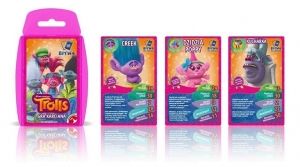 Gra Top Trumps to popularna gra karciana.Potasowane karty należy rozdać między graczy, aby nie było widać bohaterów.Każdy gracz bierze wszystkie swoje karty i trzyma je w ten sposób, że widzi tylko pierwszą z wierzchu kartę.Osoba, która rozpoczyna, wybiera dowolną cechę swojego bohatera i odczytuje ją na głos podając jej wartość, a pozostali gracze odczytują wartości ze swoich kart.Gracz, który ma na karcie największą lub najlepszą wartość, wygrywa i zabiera karty od pozostałych graczy, odkładając je na spód swojej talii.Zwycięzca tej rundy rozpoczyna nową turę gry i wybiera kolejną cechę z karty znajdującej się na górze talii.Gra toczy się dopóki gracze mają karty.Wybieraj najmocniejsze cechy bohaterów i wygrywaj!Na talii kart znajdziemy bohaterów bajki TROLLE.ZAWARTOŚĆ:- talia kart w plastikowym pudełeczku.- instrukcja.WIEK:4+WYMIARY:opakowania: 14 x 9 x 1,5 cmUWAGI:Nieodpowiednie dla dzieci poniżej 3 lat. Ryzyko zadławienia.