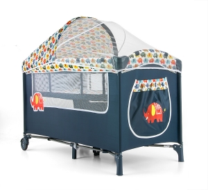 Łóżeczko dwupoziomowe, posiada solidną konstrukcję. 2 boki wykonane są z przezroczystej siatki. Usztywniany materac zapewnia komfort dziecku, natomiast składana konstrukcja umożliwia wygodny transport. Dno łóżeczka oparte jest na stabilnej krzyżakowej konstrukcji. Idealnie spełnia funkcje kojca, przenośnego jak i domowego łóżeczka oraz kołyski.