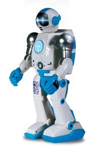 Multifunkcyjny Robot Knabo to świetna zabawka, która każdemu dostarczy rozrywki i zapewni fantastyczną zabawę!Robot potrafi wiele ciekawych rzeczy: rozmawia po polsku, odczytuje temperaturę otoczenia, uczy tańca i ma tajną misję.Gdy włączymy Knabo i wciśniemy przycisk w zielonym kółku, przywita nas miły głos: "Witaj! Jestem Knabo, kosmiczny wojownik z planety Marte (...)"Robot reaguje także na komendy głosowe:* Witaj* Skąd jesteś?* Co umiesz robić?* Fajny jesteś* Do przodu* Do tyłu* W lewo* W prawo* Laser* Tańcz* Zaśpiewaj* Przygotuj się do walki* Podaj temperaturę* Powtórz* Siemka.Aby włączyć tryb komend głosowych należy wcisnąć przycisk demo na pilocie.Wydaj polecenie, a Knabo zaskoczy Cię swoją reakcją!Funkcje Knabo:* podświetlanie* restart* reaguje na dźwięk głosu* mówi* tańczy* porusza się do przodu, do tyłu i na boki* posiada wbudowany sensor temperatury* reaguje na pilotaFunkcje pilota:* ślizg do przodu* ślizg do tyłu* idź do przodu* idź do tyłu* tryb demo* laser* skręć w prawo* skręć w lewo* programowanie* taniec* piosenka* pomiar temperatury.Wszystkie te funkcje sprawią, że Knabo zachwyci każde dziecko i szybko stanie się jego ulubioną zabawką.Robot jest po prostu nieziemski!ZAWARTOŚĆ:- robot Knabo Warrior- pilot- instrukcjaWIEK:3 +WYMIARY:opakowania: 36 x 29 x 14,5 cmwysokość robota: ok 31 cmWAGA:1010 gramZASILANIE:robot: kabel USB - brak w zestawiepilot: 2 x baterie AA 1,5 V - brak w zestawieInstrukcja użytkowania baterii w RegulaminieUWAGI:Ostrzeżenie! Nieodpowiednie dla dzieci w wieku poniżej 3 lat. Ryzyko wystąpienia małych elementów. Ryzyko połknięcia lub przedostania się do górnych dróg oddechowych małych elementów. Ryzyko uduszenia dziecka przez odcięcie mu dopływu powietrza w wyniku wewnętrznego zatkania dróg oddechowych.