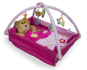 SUPER MATA EDUKACYJNA DLA DZIECI Z MISIEM RÓŻOWAWielofunkcyjna mata edukacyjna głową misia wykonana została z kolorowego, miękkiego i wysokiej jakości materiału.Doskonale sprawdzi się jako mata gimnastyczna dla dzieci już od pierwszych chwil życia.Dołączone do niej kolorowe, miękkie zabawki w żywych kolorach i plastikowe grzechotki zachęcą każdego malucha do zabawy i dodatkowo będą pobudzać zmysły i wspomagać rozwój motoryczny każdego maluszka.Mata wykonana jest z pluszowego, przyjemnego w dotyku materiału.Mata będzie rosła razem z maluszkiem. Dziecko może się bawić na niej na 3 różne sposoby:1. Leżąc na pleckach bawiąc się zawieszonymi zabawkami2. Leżąc na brzuszku i ćwicząc mięśnie3. Bawić się na siedząco ulubionymi zabawkamiWIEK:od 3 miesięcyZAWARTOŚĆ:mata-kojecpałąk 2xgłowa misia-poduszkagrzechotka 2xsłonik gryzakpluszowy miś z dźwiękiempluszowa żyrafa-grzechotkaWYMIARY:mata: 75cm x 55cmwysokość wraz z pałąkiem: 40cmWymiary kojca: 80x60x14cmwymiary maty: 105x105x45cmgłowa misia-poduszka: 28cmx26cmUWAGI:Produkt nieodpowiedni dla dzieci poniżej 3 miesięcy.
