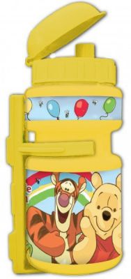 Bidon wykonany jest z plastiku. Posiada atest zezwalający na przechowywanie w nim produktów spożywczych. Jest całkowicie bezpieczny dla dzieci. W komplecie znajduje się koszyczek służący do zamocowania bidonu na ramie roweru. Koszyczek bidonu umożliwia zamocowanie go za pomocą taśm ściągających - nie ma potrzeby wiercić w ramie roweru żadnych otworów. Bidon nadaje się do użytku nie tylko na rower, ale również (po wyciągnięciu z koszyczka) dziecko może zabierać go np. do szkołyPojemność: 350 ml Wymiary: długość 14,5 cm, średnica ok. 6,2 cm