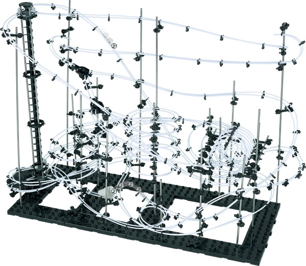 Podejmij wyzwanie i złóż swój własny tor kulkowy!Jak to działa?Cała konstrukcja wykonana jest z metalu, plastiku i żyłki.