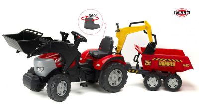 FALK Wielki Traktor McCormic Przyczepa, 2 łyżkiZestaw posiada:-napęd łańcuchowy na tylną oś-głęboką przyczepę dwuosiową - wywrotkę,-odczepianą ładowarkę,-przednią łyżkę,-klakson,-obrotowy fotel kierowcyBardzo stabilny na drodze i łatwy w prowadzeniu.Wykonany z materiałów odpornych na ścieranie i uderzenia.