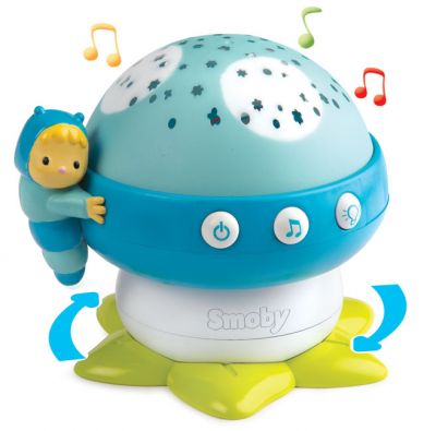 Cotoons Projektor grzybek z dźwiękiem i światłem, 2 rodz.Uroczy projektor w kształcie grzybka w dwóch kolorach - niebieskim i różowym, towarzyszący dziecku przy zasypianiu. 4 różne melodie i łagodne kolorowe światło rzucane na sufit. Ozdobiony figurką Cotoons.Wymiary: 18x13x23 cm.Wiek:0+mOpakowanie:22 x 18 x 14 cm