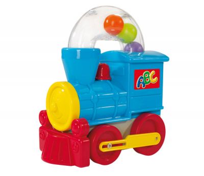 Sympatyczna zabawka z rączką w kształcie wesołej lokomotywy, wyposażona jest w kółeczka. Dzięki tej zabawce maluch uczy się związku przyczynowo - skutkowego: koła podczas kręcenia się przekazują napęd na piłeczki znajdujące się w rączce, dzięki czemu poruszają się.Lokomotywa utrzymana jest w żywej kolorystyce, która zachęca maluchy do zabawy, a dzięki swoim rozmiarom odpowiednia jest nawet dla 12 miesięcznych maluchów. Pojazd nie zawiera małych elementów dzięki czemu, możesz być pewna bezpieczeństwa dziecka.Zabawka została tak skonstruowana, aby rozwijała innowacyjność, pobudzała ciekawość oraz stymulowały motorykę