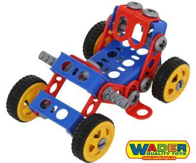 Produkt bezpieczny dla najmłodszych dzieci. Zabawkę cechują łatwe i proste w konstruowaniu elementy. Zabawka wyróżnia się świetnym wykonaniem i dużą wytrzymałością.Pobudzają kreatywność oraz doskonale rozwijają zdolności manualne najmłodszych.W zestawie znajdują się klucze, które są niezbędne małemu inżynierowi do konstruowania niezwykłych pojazdów. Do tego wiele elementów konstrukcyjnych,nakrętki, koła i opony.Za pomocą elementów można zbudować quad,samochód i wiele innych konstrukcji zależnych od wyobraźni dziecka. Realistyczne wyposażenie na pewno zapewni długą wspaniałą zabawę.