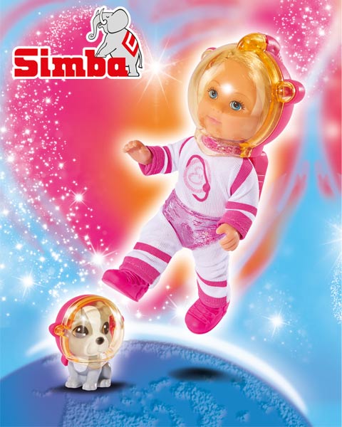 Prześliczna Lalka Evi niemieckiej firmy Simba stanie się towarzyszką codziennych zabaw każdej małej dziewczynki. Tym razem Evi i jej piesek występują w strojach astronautów.Nasze pociechy zaczną tworzyć nieskończoną ilość opowiadań o Evi i jej przygodach, co zachęci do wyobrażania i udoskonalania scenek z życia małej przyjaciółki. Tym sposobem rodzice zaoferują dzieciom możliwość rozwijania wyobraźni w tak ważnym czasie poszukiwań, zaspokajania ciekawości.