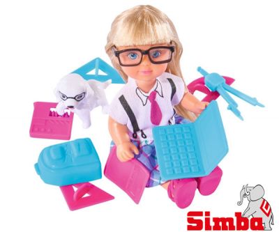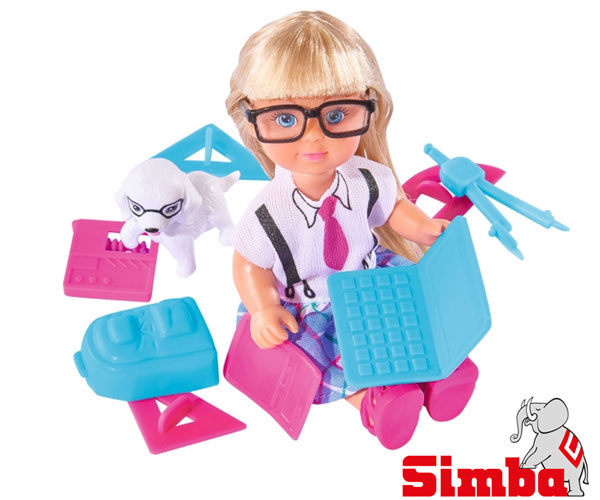 Prześliczna Lalka Evi niemieckiej firmy Simba stanie się towarzyszką codziennych zabaw każdej małej dziewczynki. Nasze pociechy zaczną tworzyć nieskończoną ilość opowiadań o Evi i jej przygodach, co zachęci do wyobrażania i udoskonalania scenek z życia małej przyjaciółki. Tym sposobem rodzice zaoferują dzieciom możliwość rozwijania wyobraźni w tak ważnym czasie poszukiwań, zaspokajania ciekawościPrześliczna Lalka Evi niemieckiej firmy Simba stanie się towarzyszką codziennych zabaw każdej małej dziewczynki. Tym razem spotykamy Evi w szkolnym stroju gotową do nauki.W zestawie znajdziemy: Lalkę w szkolnym stroju, pieska, plecak, 2 ekierki, laptop, kalkulator, cyrkiel, kątomierz, liczydłoCały zestaw spakowany jest w ładne pudełko, dzięki czemu idealnie nadaje się na prezent.