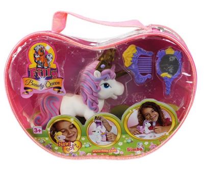 Poznaj uroczą księżniczkę Sparkle w zestawie z przeźroczystą torbą oraz akcesoriami do czesania kucyka. Pod zdejmowanymi, gumowymi włosami konika znajduje się prawdziwa grzywa do którą można uczesać specjalnym grzebykiem - i przejrzeć się w zwierciadle. Kucyka i pozostałe akcesoria można przenosić w praktycznej torbie. Zestaw został przeznaczony dla dzieci w wieku od 3 lat.Flokowany, gumowy konik zapakowany w praktyczną, plastikową torbę, ze zdejmowanymi, gumowymi włosami, pod którymi jest grzywa do czesania, wzestawie z wieloma akcesoriami do pielęgnacji włosów. Zabawka przeznaczona: dla dzieci w wieku od 3 lat