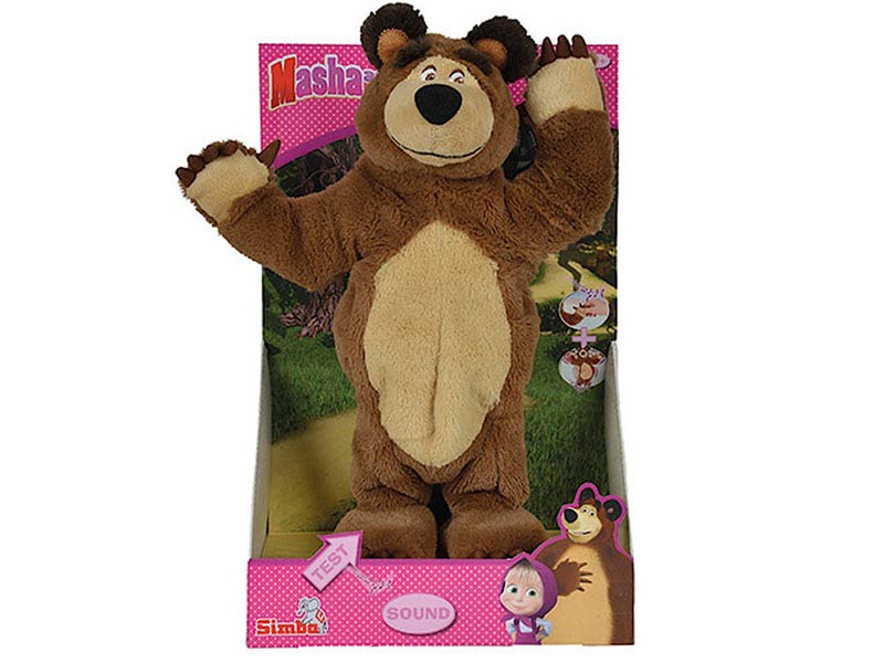 Wspaniały Tańczący Niedźwiedź - bohater niezwykle zabawnej animacji "Masza i Niedźwiedź", opowiadającej o losach małej dziewczynki Maszy oraz zasłużonego, cyrkowego niedźwiedzia.Taniec i muzykę uruchamia się poprzez wciśnięcie przycisku, który znajduje się w łapce niedźwiedzia. Miś porusza brzuchem na boki i macha łapkami. Zabawne ruchy tańczącego misia na pewno rozbawią każde dziecko!Produkt wykonany z miękkiego, miłego w dotyku futerka.Zabawka wymaga zasilania bateriami (3 x 1,5V R6)Baterie testowe dołączone do zabawki.