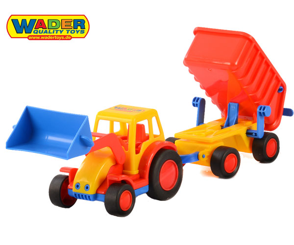 Rewelacyjna koparka z łyżką i przyczepą wywrotką to świetna zabawa w domu jak i na zewnątrz. Zestaw do złudzenia przypomina maszyny poruszające się po Naszych drogach dzięki czemu zabawa staje się jeszcze bardziej atrakcyjna.Wyposażony w ruchomą i unoszoną łyżkę oraz podnoszoną i otwieraną wywrotkę,dzięki czemu może pomagać w zróżnicowanych pracach. Jest to niezbędny zestaw na każdą budowę. Dzięki żywej kolorystyce przykuwa uwagę najmniejszych budowlańców. Kolor zestawu może odbiegać od przedstawionego na zdjęciach.Wymiary: 35 x 11,5 x 10,5 cm