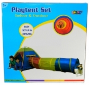 Namiot dziecięcy z tunelem od firmy iPLAY to idealna zabawka dla każdego dziecka!Zapewni on świetną zabawę i ogrom atrakcji zarówno dziewczynce jak i chłopcu!Utrzymany jest w jasnych barwach, jest trójkolorowy: żółto-niebiesko-czerwony.Można się w nim bawić:* w ogrodzie,* w domu,* na działce* na plaży.Namiot to świetne miejsce zabaw dla Twojego dziecka, można także wyścielić go kocykiem i ułożyć w nim malca do snu.Idealnie nadaje się on także do zabawy na na powietrzu - świetnie ochroni dziecko przed słońcem.Posiada elastyczny pałąk jako stelaż, uszyty został z wytrzymałego, wodoodpornego oraz łatwego w czyszczeniu materiału (poliester).W zestawie znajduje się namiot oraz tunel wykonane z tego samego materiału i utrzymany w tych samych barwach.Podłoga wykonana jest z nieprzemakalnego materiału.Zasłonki mają doszyte specjalne tasiemki, dzięki którym z łatwością można otworzyć lub zamknąć wejście oraz okno.Namiot jest również łatwy w montażu oraz demontażu i wygodny do przechowywania, ponieważ po złożeniu zajmuje niewiele miejsca.Produkt posiada Certyfikat Jakości i Bezpieczeństwa CE.ZAWARTOŚĆ:- namiot igloo z tunelemWIEK:3+WYMIARY:Opakowania: 50 x 50 x 5 cmNamiotu igloo ok: 112 x 112 x 94 cmTunelu ok: średnica 48 cm x 180 cmUWAGI:Produkt nieodpowiedni dla dzieci do 3 lat z uwagi na możliwość oderwania i połknięcia drobnych elementów.Produkt może ulec drobnym zmianom technicznym jak i kolorystycznym.Opakowanie nie jest zabawką.Dziecku przekazywać zabawkę bez opakowania.Zachować opakowania wraz z ostrzeżeniami i pozostałymi informacjami do późniejszej korespondencji.