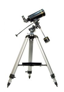 Teleskop Maksutowa-Cassegraina. Średnica soczewki obiektywowej: 102 mm. Ogniskowa: 1300 mm.Levenhuk Skyline PRO 105 MAK to teleskop Maksutowa-Cassegraina przeznaczony dla zaawansowanych astronomów.Dzięki długości ogniskowej 1295 mm teleskop posiada maksymalne przybliżenie 200x, dzięki czemu jest niezawodnym przyrządem do obserwacji astronomicznych oraz astrofotografii. Standardowy gwint T na tubusie ogniskującym pozwala zamontować aparat SLR i umożliwia wykorzystanie teleskopu do astrofotografii. Możliwości tego teleskopu nie są ograniczone jedynie do obserwacji obiektów Układu Słonecznego. Umożliwia on również obserwacje głębokiego nieba i obiektów znajdujących się na ziemi. Niezależnie od rodzaju prowadzonych obserwacji możesz być pewny, ze obraz będzie najwyższej jakości, dzięki zastosowaniu w tym modelu układu optycznego z pełną, wielowarstwową powłoką.Połączenie szukacza Red Dot i praktycznego paralaktycznego montażu znacznie ułatwia lokalizacje i śledzenie obiektów astronomicznych.Teleskop posiada dwa dodatkowe okulary (SUPER 10, SUPER 25). Tubus ogniskujący tego modelu ma standardowa średnice 1,25", co oznacza, ze możesz używać okularów dowolnego rodzaju i marki, aby jeszcze bardziej zwiększyć możliwości teleskopu. Wytrzymały aluminiowy statyw posiada regulowana wysokość oraz stolik, na którym możesz położyć wszystkie akcesoria. Konstrukcja teleskopu również jest wykonana z aluminium, dzięki czemu jest on lekki i niezawodny.Dane techniczne: