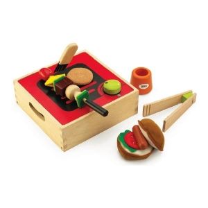 Czas na piknik i grilowanie!Zestaw jest spełnieniem marzeń każdego młodego kucharza. Komplet zawiera: przenośny grill, realistycznie wyglądające przyrządy do grilowania, przyprawy, składniki do szaszłyka i hamburgera.Wszystkie części zestawu można schować do wnętrza przenośnego grilla.Zabawka idealna dla dzieci interesujących się sztuką gotowania i lubiących zabawy typu “bawię się w...”. CO ROZWIJA?- rozwija umiejętności percepcyjne,- zachęca do kreatywnej zabawy ,- rozwija wyobraźnię,- wspomaga rozwój myślenia przyczynowo-skutkowego. EKOLOGICZNE:Stworzone w Tajlandii z drewna kauczukowego z użyciem nietoksycznych farb, barwników i lakierów.Opakowania zawierają przynajmniej 70% papieru z recyklingu. ZAWARTOŚĆ:- przenośny grill,- przyrządy do grillowania,- przyprawy,- składniki do szaszłyka,- składniki do hamburgera. WIEK:36 m+ WYMIARY:25 x 9 x 22 cm UWAGI DOTYCZĄCE BEZPIECZEŃSTWA:Ten produkt jest oznaczony znakiem CE potwierdzającym zgodność z Dyrektywą Europejską 2009/48/WE oraz normą EN71, dotyczącymi bezpieczeństwa zabawek. OSTRZEŻENIE:Ryzyko połknięcia. Zabawka zawiera małe części-kulki. Nieodpowiednie dla dzieci w wieku poniżej 3 lat.
