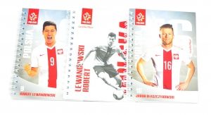 Koło zeszyt formatu A6 80 w kratkę firmy Interdruk z wizerunkami piłkarzy reprezentacji Polski na okładce.Produkt na licencji PZPN "Łączy nas piłka".