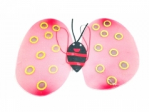Dziecięcy strój biedronka podkreśli naturalny wdzięk i urok niejednej dziewczynki.Kostium doskonale nadaje się na kinderbale oraz inne przebierane zabawy dla najmłodszych, gdzie sympatyczna biedronka z pewnością zwróci na siebie uwagę i zrobi prawdziwą furorę.Konstrukcja skrzydełek jest wykonana z drutu a wypełnienie skrzydełek z delikatnego materiału pokrytego brokatowym wzorem.Strój biedronka składa się z skrzydeł, opaski z czułkami oraz różdżki z małą biedronką.Skrzydła zakładane na ramiona poprzez wszyte gumki.Całość zapakowana w opakowanie foliowe.ZAWARTOŚĆ:- skrzydła,- opaska,- różdżkaWYMIARY:- wielkość skrzydełek to około 37x47 cm,- długość różdżki 30 cm,- długość czułek na opasce około 10 cm.Rozmiar uniwersalny