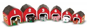 Domki można układać od najmniejszego do największego i odwrotnie, od 1-6 itd. Można bawić się samymi zwierzątkami, z domków zrobić stodoły, ustawiać, liczyć, chować...