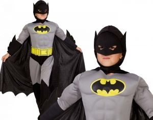 Super zestaw, który zadziwi każdego chłopca.Chłopiec w tym przebraniu przeobrazi się w rewelacyjnego Badmana, ze wspaniałą muskulaturą.Dzięki takiemu przebraniu, chłopiec stanie się królem balu.Swoim wyglądem zachwyci kolegów, nauczycieli, wszystkich uczestników balu.Bluza posiada usztywniany przód, imitujący mięśnie.Wkładana przez głowę, zapinana z tyłu na rzep.Rękawy są długie, w górnej części wypchane miękką gąbką, imitującą mięśnie.Spodnie posiadają wszytą w pasie gumkę, z przodu znajduje się żółty, ozdobny pas.Zakończone są nakładami na buty, które zamocujemy dzięki specjalnym gumkom.Peleryna jest czarna, długa połączona z kapturem z maską.Peleryna zapinana na rzep.Strój w całości wykonany bardzo starannie z najwyższej jakości materiałów.ZAWARTOŚĆ:strój Badman 104 cm składający się z:- bluzy,- spodni z nakładkami na buty- peleryny z maską.WIEK:4 lataWYMIARY:rozmiar 104 cmBLUZA:szerokość w klatce piersiowej ok.30 cmdługość ok. 43 cmdługość rękawa od zewnętrznej ok.36 cmdługość rękawa od wewnętrznej ok.30 cmSPODNIE:obwód w pasie ok. 66 cmdługość nogawki ok. 71 cmPELERYNA:obwód szyi ok. 38 cmdługość ok. 78 cmdługość kaptura ok. 27 cmUWAGI:Nieodpowiednie dla dzieci w wieku poniżej 3 lat, zw względu na możliwość połknięcia małych części.Przed podaniem zabawki dzieciom, usunąć wszystkie elementy opakowania i etykiety.Prosimy o zachowanie etykiety .
