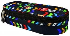 SASZETKA SZTYWNA ST.ARROWS ST.MAJEWSKI PC-01St.Right to nowa marka od Firmy St.Majewski.Piórnik jest bardzo kolorowy, wykonany bardzo starannie z najlepszych materiałów.Komora saszetki zapinana jest na suwak, który został zakończony wygodnym, profilowanym uchwytem. Posiada komorę, siateczkową kieszonkę oraz gumki, co pozwala utrzymać porządek i pomieścić niezbędne akcesoria szkolne. ZAWARTOŚĆ:- 1 komora zapinana na suwak,- profilowane uchwyty, - organizer na przybory szkolne,- siateczkową kieszonkę,- gumki na ołówki i długopisy, - dużą pojemność,- wysokiej jakości materiały,- modny wzór. WYMIARY:saszetki ok. 23 x 11 x 6 cm WIEK:10 + WAGA:175 g UWAGI:Nieodpowiednie dla dzieci poniżej 3 roku życia.