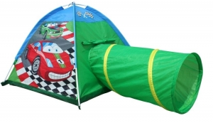 Namiot dziecięcy z tunelem Auta od firmy iPLAY to idealna zabawka dla każdego dziecka!Zapewni on świetną zabawę i ogrom atrakcji każdemu chłopcu.Z pewnością zachwyci wzorem i kolorem - jest zielono - niebieski i posiada modny motyw aut.Można się w nim bawić:* w ogrodzie,* w domu,* na działce,* na plaży,Namiot to świetne miejsce zabaw dla Twojego dziecka, można także wyścielić go kocykiem i ułożyć w nim malca do snu.Świetnie ochroni dziecko przed słońcem i wiatrem.W zestawie znajduje się namiot oraz tunel utrzymane w tych samych barwach.Podłoga wykonana jest z nieprzemakalnego materiału.Zasłonki mają doszyte specjalne tasiemki, dzięki którym z łatwością można otworzyć lub zamknąć wejście.Namiot jest łatwy w montażu oraz demontażu i wygodny do przechowywania, ponieważ po złożeniu zajmuje niewiele miejsca.Z pewnością zapewni twojemu dziecku długie godziny wspaniałej zabawy!Produkt posiada Certyfikat Jakości i Bezpieczeństwa CE.ZAWARTOŚĆ:- namiot igloo Samochody z tunelemWIEK:3+WYMIARY:Opakowania: 50 x 50 x 5 cmNamiotu z tunelem 170 x 112 x 94UWAGI:Produkt nieodpowiedni dla dzieci do 3 lat z uwagi na możliwość oderwania i połknięcia drobnych elementów.Produkt może ulec drobnym zmianom technicznym jak i kolorystycznym.Opakowanie nie jest zabawką.Dziecku przekazywać zabawkę bez opakowania.Zachować opakowania wraz z ostrzeżeniami i pozostałymi informacjami do późniejszej korespondencji.