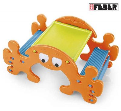 Stolik po odwróceniu przekształca się w huśtawkę - bujak. Zabawka wyposażona została w 4 wygodne miejsca do siedzenia. Całość wykonana jest z wysokiej jakości tworzywa odpornego na działanie warunków atmosferycznych i promieni UV.