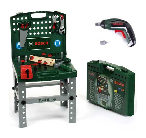 Narzędzia wchodzące w skład zestawu są wiernymi kopiami prawdziwych narzędzi firmy Bosch.Zawartość zestawu:- Zielona walizka z wygodnym uchwytem z zamkami zabezpieczającymi przed otworzeniem. Walizka po otwarciu tworzy blat oraz ściankę warsztatu.- Szare, stabilne nogi, które stanowią podstawę dla otwartej walizki- Wkrętarka Bosch Ixolino z funkcją obracania w lewo i w prawo ze światełkiem- Narzędzia: Piła, Młotek, Śrubokręt, Klucz francuski, Obcęgi, Imadło- 21 elementy konstrukcyjne (śrubki, gwoździe,..)Wkrętarka wymaga zasilania bateriami: 2 x AAA/R3Wysokość całego warsztatu: 76 cmWalizka: 41 x 37 x 8,5 cmMarka Klein znana jest na świecie z produktów wykonanych z dbałością o szczegóły, z najlepszej jakości materiałów oraz atrakcyjnego wzornictwa. Zabawki tej marki idealnie trafiają w gusta małych i większych użytkowników. Artykuły oznaczone marką Klein gwarantują świetną zabawę oraz odznaczają się długą żywotnością.