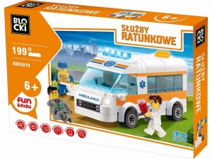 Klocki BLOCKI wykonane zostały z wytrzymałego plastiku, nie odbiegają one jakością od innych markowych klocków.Zachwycają dużą ilością ruchomych elementów oraz dużymi możliwościami samodzielnego tworzenia wymarzonych pojazdów i budowli. Klocki Blocki Służby Ratunkowe to seria klocków z motywem pogotowia ratunkowego. Zestaw ten składa się ze 199 elementów.Umożliwi on zbudowanie nowoczesnego ambulansu z otwieranym tyłem, by przewozić pacjentów. Znajdziemy tu także 3 ludziki.ZAWARTOŚĆ:klocki - 199 elementówWIEK:6 +WYMIARY:opakowania: 31,5 x 22 x 4,5 cmUWAGI:Ostrzeżenia! Zabawka nieodpowiednia dla dzieci poniżej 3 lat. Małe części. Niebezpieczeństwo zadławienia.