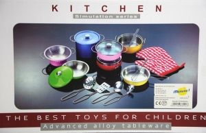 Zestaw garnków kuchennych Garnki bardzo ładnie i estetycznie wykonane, malowane w żywe kolory genialnie imituje prawdziwe garnki kuchenne.Zestaw do gotowania zapewni wspaniałą zabawę połączoną z nauką.Dzieci często lubią pomagać rodzicom w kuchni, dlatego teraz będą mogły również przygotowywać smaczne posiłki dla swoich lalek i misiów.Zawartość:- 1 mały garnek z przykrywką- 1 duży garnek z przykrywką- 1 rondel z przykrywką- 1 patelnia z przykrywką- miska- łyżka do makaronu- łopatka- cedzak- łyżka wazowa- łapka kuchennaWiek:3 +Wymiary:opakowania: 21 x 35 x 10 cm