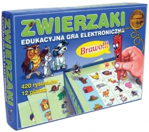 Gra Zwierzaki - wiem wszystko to świetna gra edukacyjna dla każdego przedszkolaka.Gra jest niezwykle prosta.Na 12 planszach znajduje się 420 rysunków o różnorodnej tematyce.Przy każdym z nich znajduje się czarny punkt. Gracz dotyka jednocześnie dwa skojarzone ze sobą punkty na planszy za pomocą specjalnych długopisów.W przypadku prawidłowej odpowiedzi zapali się lampka.Znajdziemy tu różne zabawy, np.: kto tu mieszka?, czy czyj to cień?.Dodatkową atrakcją dla dziecka jest fakt, że gra jest elektroniczna. ZAWARTOŚĆ:gra Zwierzaki - 12 plansz WIEK:4+WYMIARY:opakowania: 33 x 24 x 5 cmZASILANIE:1 x bateria 9V 6LF22 - brak w zestawieInstrukcja użytkowania baterii w Regulaminie UWAGI:Nieodpowiednie dla dzieci poniżej 3 roku życia.