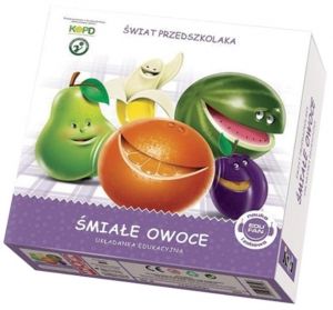 Świat Przedszkolaka Śmiałe Owoce to układanka dla pięciolatków.Dzieci wybierają elementy, z których układają owocowe obrazki.Pod obrazkami powstają nazwy układanych owoców.Na obrazkach znajdziemy między innymi: arbuza, banana, śliwkę czy gruszkę.Dzięki temu dziecko pozna owoce, ich wygląd oraz ich nazwy. Gra pomocna w poznawaniu budowy wyrazów, rozwija funkcje niezbędne do nauki pisania i czytania - stanowi idealny wstęp do edukacji dziecka.ZAWARTOŚĆ:Śmiałe Owoce - 8 układanekWIEK:4+WYMIARY:opakowania: 25 x 25 x 6 cm UWAGI:Nieodpowiednie dla dzieci poniżej 3 roku życia.