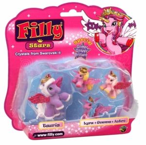 FILLY STARS 4 FIGURKI MAMA Z TRÓJKĄ DZIECI Z KRYSZTAŁKAMI SWAROVSKIEGOFilly Stars to idealna zabawka dla każdej dziewczynki lubiącej kucyki i bajkowe postacie.Figurki są bardzo ładne, kolorowe.Zapakowane w estetyczne opakowanie, idealnie nadają się na prezent dla dziewczynki.W zestawie znajdują się cztery unikatowe figurki /mama z trójką dzieci/.Kolekcja składa się z 4 zestawów, w skład którego wchodzą różne figurki.Zestawy wysyłane losowo. Zawartość:- 1 figurka Filly Stars w wersji z mega brokatem- 3 figurki Filly Stars Baby, w tym jedna w wersji z mega brokatem- 4 karty kolekcjonerskie- ulotka WIEK:powyżej 3 latWYMIARY:opakowanie: 18 x 17 x 5 cmUWAGI:Nieodpowiednie dla dzieci w wieku poniżej 3 lat, ze względu na drobne elementy łatwe do połknięcia - ryzyko udławienia. Należy zachować opakowanie, etykiety lub ulotki, na których zamieszczone są informacje o zabawce. Przed podaniem zabawki dziecku należy usunąć opakowanie. Kolory i kształty mogą się nieznacznie różnić od tych pokazanych na opakowaniu.