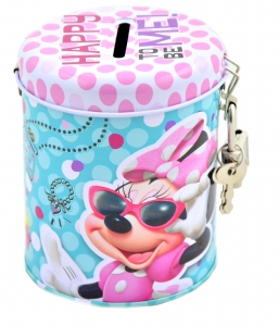 Skarbonka to idealny prezent dla każdego dziecka!Skarbonka z motywem Minie z pewnością przypadnie do gustu każdej małej fance popularnej bajki. Skarbonka jest metalowa, kolory są pastelowe. Znajdują się na niej uwielbiane przez dzieci postaci z bajki Myszka Minie i Kaczka Daisy. Skarbonka zamykana jest na kłódkę, a na wieczku znajduje się otwór na pieniądze.Dzięki temu Twoje dziecko nauczy się oszczędzać. ZAWARTOŚĆ:- skarbonka,- kłódka,- kluczyk. WIEK:3+ WYMIARY:wysokość skarbonki: 9,7 cmśrednica: 8 cm UWAGI:Nieodpowiednie dla dzieci poniżej 3 lat. Zawiera małe elementy. Ryzyko połknięcia, zadławienia, uduszenia.