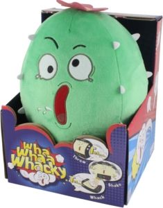 Maskotka Wha Whaa Whacky - KAKTUS.Maskotki z serii Wha Whaa Whacky to super hit na polskim rynku.Zabawki podbiły już serca małych i dużych za oceanem, a teraz zagościły za naszym rodzimym rynku zabawek.W serii mamy aż pięć przesympatycznym maskotek.Zabawki wykonane są z bardzo miłego i mięciutkiego w dotyku materiału.Każda z maskotek jest inna, ale wszystkie bardzo radosne i śmieszne.Uderz, podrzuć, potrząśnij a z pluszaka wydobędzie się specyficzny dźwięk.Gdy uderzymy lub podrzucimy maskotkę usłyszymy -KAKTUS.Zgromadź wszystkie i stwórz super niepowtarzalną kolekcję czaderskich maskotek Wha Whaa Whacky.ZAWARTOŚĆ:- maskotka Wha Whaa Whacky Kaktus WIEK:3 lata+WYMIARY:opakowania 19,5 x 19 x 24maskotki: wysokość ok.24 cm szerokość ok.16 cm WAGA:460 gZASILANIE:3 x bateria AAA 1,5V - załączone.Instrukcja zasilania baterii w regulaminie.UWAGI:Nieodpowiednie dla dzieci poniżej 3 lat