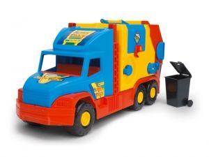 Super Truck - Śmieciarka krótka Wader 36580Super Truck Śmieciarka krótka - auto z serii Super Truck o długości 59 cm charakteryzujące się precyzją wykonania, dużą wytrzymałością, nowoczesnym wyglądem oraz ciekawą kolorystyką.Ta śmieciarka wyposażona jest w dwa kosze oraz otwierany kontener, do którego można ładować różne przedmioty.W kontenerze umieszczono także taśmociąg, dzięki któremu można przesuwać zawarte w nim przedmioty lub opróżniać go z nich.Realistyczne odzwierciedlenie prawdziwego pojazdu, gwarantuje dobrą zabawę zarówno w domu jak i piaskownicy.Całość wykonana jest z wysokiej jakości tworzywa sztucznego, odpornego na warunki atmosferyczne, dzięki czemu zabawkę przez cały rok można przechowywać np. w ogródku czy na balkonie.Zabawki WADER kierowane są do dzieci do 7 lat. Podstawową ich zaletą jest bezpieczeństwo oraz wysoka jakość.Zabawki Wader posiadają także walory edukacyjne, ponieważ:- pobudzają kreatywność i wyobraźnię dziecka,- poprawiają umiejętności manualne i motoryczne,- polepszają zdolności intelektualne - zdolność kojarzenia kształtów i kolorów.- umożliwiają integrację z rówieśnikami – sprawdzają się w zabawie w grupie.Produkt posiada Europejski Certyfikat Jakości i Bezpieczeństwa CE.ZAWARTOŚĆ:- samochód- 2 pojemniki na śmieci- zabawki występują w różnych wersjach kolorystycznych (wysyłane są losowo)WIEK:3+WYMIARY:wymiary opakowania: 59,5 x 28,5 x 20,5 cmwymiary zabawki: 59cmUWAGI:Nieodpowiednie dla dzieci w wieku poniżej 3 lat