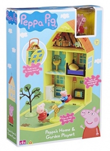 Świnka Peppa to główna bohaterka popularnego brytyjskiego serialu animowanego, który opowiada o życiu codziennym świnki - bajka skierowana jest głównie do dzieci w wieku przedszkolnym. Domek jest piętrowy, a w nim znajdują się takie pomieszczenia jak: łazienka, sypialnia, kuchnia i bawialnia i strych. Aby uzyskać dostęp do pomieszczeń należy rozłożyć domek.Pokoje ozdobione są namalowanymi elementami, posiadają także wypukłe umeblowanie.Dodatkowo w zestawie znajdują się meble, które można dowolnie ustawić.
