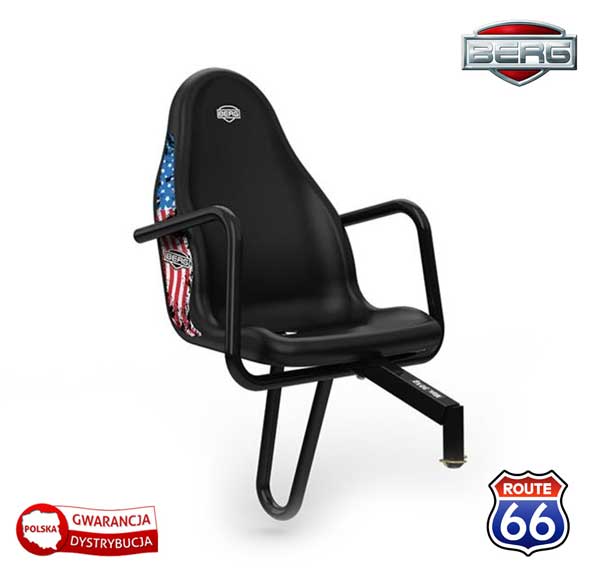 BERG Fotel pasażera Route 66Waga fotela: 4,6 kg,Maksymalne obciążenie fotela: 30 kg.Wymiary: 51 x 45 x 72 cmFotel nie jest kompatybilny z gokartami z serii Buddy i Rally oraz nie może być montowany jednocześnie z pałąkiem Rollbar.