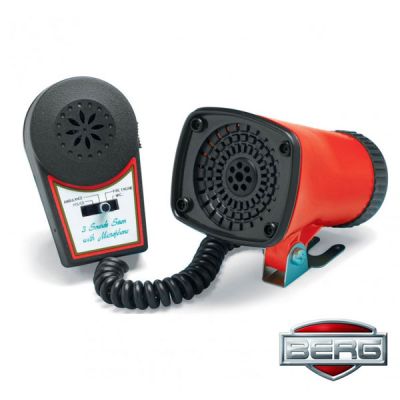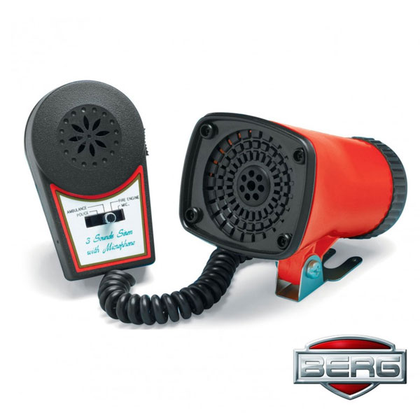 Syrena wydaje odgłosy policyjne, straży pożarnej oraz karetki. Megafon daje możliwość mówienia do mikrofonu a głos wydobywa się z głośnika! Syrenę montuje się na kolumnie kierowniczej. Akcesorium nie pasuje do serii Buddy, Rally Orange oraz Jeep Adventure. Zabawka wymaga zasilania baterią 9 V (w zestawie)
