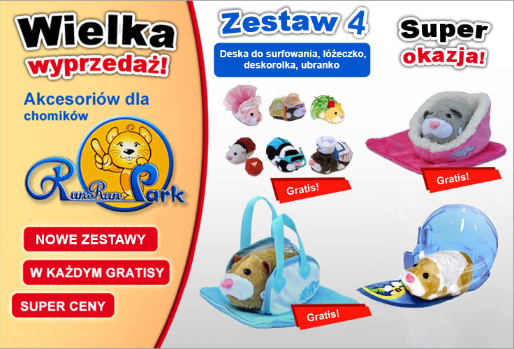 Obejrzyj filmik, zobacz wszystkie zestawy Run Run i wybierz to, czego potrzebuje Twój chomik.