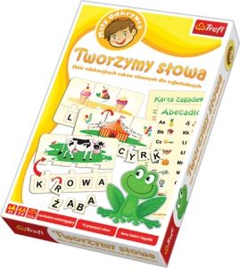 Gra Tworzymy Słowa to zbiór edukacyjnych zabaw słownych z serii Mały Odkrywca stworzonych z myślą o rozwoju najmłodszych dzieci.Gra ma za zadanie w przyjemny sposób wprowadzić dziecko w świat liter i słów.Pozwoli ona dziecku na poszerzenie zdolności werbalnych - utrwala i poszerza słownictwo, ćwiczy łączenie obrazu graficznego z jego desygnatem. Ponadto gra wpływa na rozwój koncentracji, koordynacji wzrokowo-ruchowej dziecka oraz jego zdolności logicznego myślenia.Gra Tworzymy Słowa stanowi wstęp do nauki czytania i pisania.Produkt skierowany jest do najmłodszych, jest bezpieczny dla dziecka - posiada duże elementy wykonane z grubej tektury.