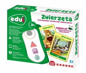 Rewelacyjny czytnik kart edukacyjnych wpływa na rozwój dziecka poszerzając jego wiedzę, rozwijając kreatywność i umiejętności ruchowe, a jednocześnie dostarcza wiele radości i zabawy.Czytnik posiada 3 przyciski uruchamiające różne funkcje:-podstawowe informacje-wesołe historyjki-inscenizacje.Wystarczy wybrać jedną z kart dołączonych do zestawu, włożyć ją do elektronicznego skanera i przenieść się w świat nauki i zabawy!Podstawowe informacje, które podaje czytnik to ciekawostki ze świata zwierząt: ich zachowania, co jedzą, gdzie żyją i jakie mają cechy.Wesołe historyjki - każda karta opowiada ciekawą historię na temat wybranego zwierzęcia.Inscenizacje - czytnik zachęca do odgrywania ról, co stanowi nie tylko wspaniałą zabawę, ale też okazję do nauki.ZAWARTOŚĆ:-czytnik,-44 karty,-instrukcja,-pojemnik na karty. WIEK:3 lata +WYMIARY:opakowania: 25 x 20 x 5cmczytnika: 12 x 6 cmZASILANIE:3 x AAA -dołączone baterie testoweUWAGI:Nieodpowiednie dla dzieci poniżej 3 lat.