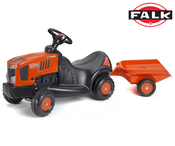 Traktorek, chodzik, jeździk do odpychania z przyczepą od firmy Falk jest przeznaczony dla dzieci w wieku od 1 do 3 lat. Wykonany z wysokiej jakości plastiku.Posiada: klakson, skrętną przednią oś dopinaną przyczepę maksymalne obciążenie 30kgWymiary: długość zestawu 121 cm, szerokość 37 cm, wysokość 47cm
