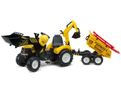 Traktor posiada:obracany o 360 stopni fotelgrabki i łopatkę przyczepianą do przyczepynapęd łańcuchowy na tylną ośgłęboką przyczepę dwuosiowąładowarkęprzednią łyżkęklaksonod 3 lat, wymiary: 225 dł. x 60 szer. x 79 wys.(cm)