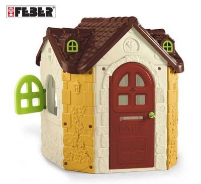 Drzwi wejściowe wyposażone są w otwór, który pełni funkcję skrzynki na listy. Brązowy dach okienkami i z pokryciem imitującym dachówkę. Całość wykonana jest z barwnego tworzywa odpornego na promieniowanie słoneczne i temperaturę.