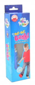 HOP BAŃKI to mega zestaw do robienia baniek i zabawy nimi!Zabawa bańkami możliwa jest dzięki specjalnie stworzonej do tego celu skarpecie.Zabawa jest niezwykle prosta! Wystarczy nalać trochę płynu na talerzyk, założyć magiczną skarpetę, wydmuchać bańkę przez przyrząd i za pomocą magicznej skarpety delikatnie można odbijać bańki.Warto pamiętać także, że im większa jest bańka, tym mniej jest wytrzymała i szybciej pęknie.Płyn w Hop Bańkach nie zawiera szkodliwych substancji i jest bezpieczny dla dzieci.ZAWARTOŚĆ:Zestaw Hop Bańki zawiera:- magiczna skarpetę,- przyrząd do robienia baniek,- płyn do baniek: 60 ml,WIEK:6+WYMIARY:opakowania: 5 x 22 x 7 cmUWAGI:Zabawka nieodpowiednia dla dzieci poniżej 3 lat. Zawiera małe elementy. Nieodpowiednie do picia.