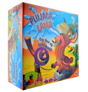 GRA ZRĘCZNOŚCIOWA PLUJĄCA LAMA to gra dla 2-4 graczy w wieku 4 lata+Czas rozgrywki to ok 10 minut.ZASADY GRY:Zdejmij korek z ogona lamy i wlej wodę.Załóż korek, postaw lamę na środku stołu włącz guziczek w pozycji ON.Lama zacznie się obracać.Ustaw katapultę przed Lamą i ... ognia.Postaraj się trafić kapeluszem w sterczącą czuprynę,... ale uważaj jeśli trafisz w jej uszy bądź nos lama Cię opluje.Kto zostanie ochlapany przez lamę?Lama wciąż się porusza, więc nigdy nie wiadomo w kogo trafi.Gracz, któremu uda się trzy razy trafić w czuprynę wygrywa !!!W każdej kolejce graczowi przysługuje tylko jeden strzał. ZAWARTOŚĆ:- 1 elektroniczna lama,- 12 kapeluszy,3 czerwone, 3 zielone, 3 żółte, 3 fioletowe- 1 katapulta,- 1 zestaw naklejek,- instrukcja gryWIEK:4 lata+WYMIARY:opakowania 27 x 27 x 12 cmwysokość lamy ok.24 cm WAGA:615 gZASILANIE:baterie 3 x AAA - brak w zestawieInstrukcja użytkowania w regulaminie. UWAGI:Nieodpowiednie dla dzieci poniżej 3 lat