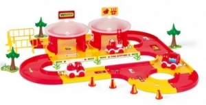 Straż Pożarna to zestaw tematyczny z serii Kid Cars 3d od firmy WADER.Elementy zabawki mają specjalną kolorystykę, a dobrane samochody i naklejki ułatwiają dzieciom zapamiętanie ważnego numeru alarmowego 112.Dzięki zastosowanym oznaczeniom dzieci poznają również zasady ruchu drogowego.Łatwa i prosta konstrukcja zabawki jest także kompatybilna z pozostałymi zestawami z serii Kid Cars 3D oraz z trasami licencyjnymi Friends On The Move.Zabawki WADER kierowane są do dzieci do 7 lat.Podstawową ich zaletą jest bezpieczeństwo oraz wysoka jakość.Przestrzeganie wysokich standardów jakości oraz stosowanie nowoczesnej technologii produkcji sprawiają, iż zabawki:- Nie mają ostrych krawędzi.- Ich elementy są trwale i stabilnie połączone.- Ścianki zabawek są wytrzymałe na nacisk i nie łamią się.Zabawki WADER posiadają także walory edukacyjne, ponieważ:- Pobudzają kreatywność i wyobraźnię dziecka.- Poprawiają umiejętności manualne i motoryczne.- Polepszają zdolności intelektualne - zdolność kojarzenia kształtów i kolorów.- Umożliwiają integrację z rówieśnikami – sprawdzają się w zabawie w grupie.ZAWARTOŚĆ:- Garaż z wyposażeniem- 3 pojazdyWIEK:- Powyżej 12 miesięcyWYMIARY GARAŻU PO ROZŁOŻENIU:- 60 x 100 cmWYMIARY OPAKOWANIA:- 59 x 39,5 x 15 cmUWAGI:Produkt nie nadaje się dla dzieci poniżej 12 miesięcy.Produkt posiada Europejski Certyfikat Jakości i Bezpieczeństwa CE.