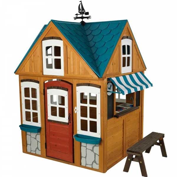Drewniany domek KidKraft Seaside Cottage z kuchnią to dla wielu dzieci spełnienie marzeń o posiadaniu własnego wyjątkowego miejsca w ogrodzie. Domek Seaside Cottage to idealne miejsce do zabawy na świeżym powietrzu. Domek został wyposażony w wiele kreatywnych dodatków, które z pewnością urozmaicą zabawę. Znajdziemy tu między innymi kuchnię, tablicę kredową, zegar czy elektroniczny dzwonek do drzwi. Solidny i niezwykle trwały domek został wykonany z wysokiej jakości drewna, dach to doskonała imitacja gontu w kolorze morskiego błękitu a białe ramy okien ozdabiają prawdziwe donice. Niektóre elementy domku to częściowo zmontowane już panele, które tworzą stabilną konstrukcję na wiele lat.Cechy produktu:- Domek jest wygodny do zabawy dla kilkorga dzieci- Duże okna umożliwiają zaglądanie do środka- W środku znajduje się zestaw kuchenny z akcesoriami do gotowania- Otwierane drzwi- Skrzynka pocztowa z flagą- Zegar- Działający prawdziwy dzwonek do drzwi- Donice okienne- Wiatrowskaz na dachu- Wzmocnione drewniane panele zapobiegają wypaczaniu, drewno jest wodoodporne, odporne na trudne warunki atmosferyczne.- Waga produktu: 51 kg- W zestawie znajduje się ilustrowana instrukcja krok po kroku- Produkt wymaga częściowego montażuWierzymy, ze każde dziecko potrzebuje inspiracji do odkrywania i wyrażania siebie,tak brzmi maksyma działającej już od 1968 roku firmy skupiajacej się na projektowaniu zabawek edukacyjnych. Kidkraft jest liderem w produkcji drewnianych zabawek oraz akcesoriów do pokoju dziecięcego.W ofercie znajdują się drewniane domki dla lalek, kuchnie, garaże z samochodami dla chłopców, tablice dwustronne oraz wiele innych kreatywnych zabawek przy których dziecko spędzi mnóstwo radosnych chwil.151 x 131 x 200 cm