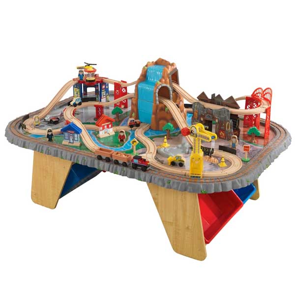 112 częściowa trasa rozciąga się wokół makiety, przez mosty oraz przez górę z wodospadem. Uniesione brzegi stolika w postaci torowiska zapobiegają spadaniu zabawek ze stolika na podłogę.Tory są kompatybilne z innymi znanymi markami kolejek.Cechy produktu:- Precyzyjnie wykonane drewniane elementy- Kolorowa i trwała powierzchnia makiety- Duże wymiary pozwalają na zabawę kilkoro dzieci jednocześnie- Solidna konstrukcjaKolejka zawiera szczegółową instrukcję montażu krok po kroku.Wierzymy, ze każde dziecko potrzebuje inspiracji do odkrywania i wyrażania siebie,tak brzmi maksyma działającej już od 1968 roku firmy skupiajacej się na projektowaniu zabawek edukacyjnych. Kidkraft jest liderem w produkcji drewnianych zabawek oraz akcesoriów do pokoju dziecięcego.W ofercie znajdują się drewniane domki dla lalek, kuchnie, garaże z samochodami dla chłopców, tablice dwustronne oraz wiele innych kreatywnych zabawek przy których dziecko spędzi mnóstwo radosnych chwil.