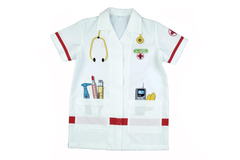 Fartuszek lekarski Prestige wykonany jest w uniwersalnym rozmiarze. Nadaje się dla dzieci od 4 do 8 lat niezależnie od płci. Tkanina, z której został starannie uszyty jest bardzo dobrego gatunku. Wszystkie brzegi są ładnie podszyte, zapinany jest na rzepy. Fartuszek posiada dwie pojemne kieszenie, do których z pewnością zmieści się dużo akcesoriów lekarskich. Dodatkowo nadrukowane na nim zostały kolorowe ilustracje atrybutów każdego doktora.Fartuszek: zapina się na rzepy przeznaczony dla dzieci w wieku 3-5 lat materiał: 100% poliester wymiary fartuszka mierzonego na płasko: długość - 57 cm, szerokość w ramionach - 29,2 cm, szerokość pod pachami - 40 cm, szerokość na dole - 41,5 cm, długość rękawków: 18,5 cmMarka Klein znana jest na świecie z produktów wykonanych z dbałością o szczegóły, z najlepszej jakości materiałów oraz atrakcyjnego wzornictwa. Zabawki tej marki idealnie trafiają w gusta małych i większych użytkowników. Artykuły oznaczone marką Klein gwarantują świetną zabawę oraz odznaczają się długą żywotnością.